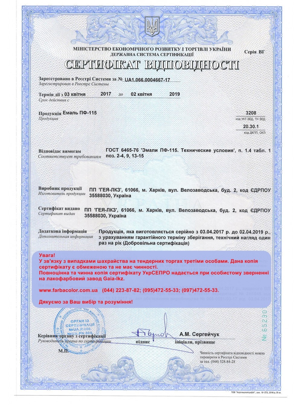 Емаль ПФ-115 ТМ «GAIA» виготовлена з дотриманням всіх вимог ГОСТ 6465-76 !!!